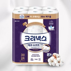 크리넥스 데코 앤 소프트 화이트 천연펄프 3겹 고급롤화장지, 38m, 24개입, 1개